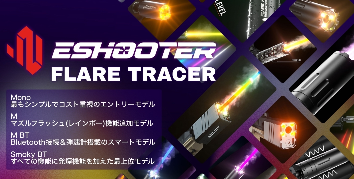 Eshooter MASTER x SILO - FLARE Smoky BT 弾速計一体型 レインボーフラッシュ&スモーク トレーサー(発煙&マズルフラッシュ機能/スマホ連動/技適取得)