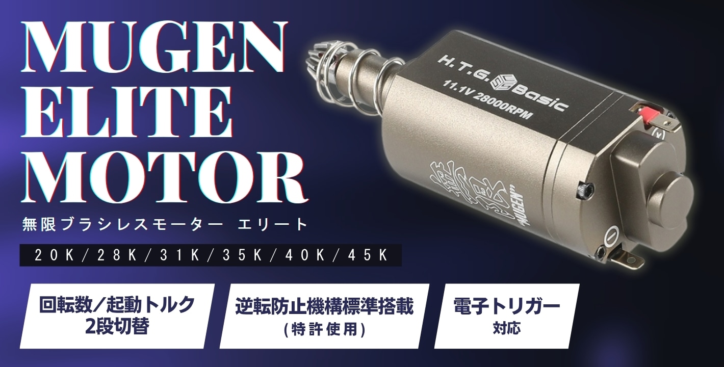 HTGベーシック MUGEN 無限 ブラシレスモーター PTW 電動ガン用モーター 【回転数/起動トルク自由設定/逆転防止機構標準搭載(特許使用)】電子トリガー対応