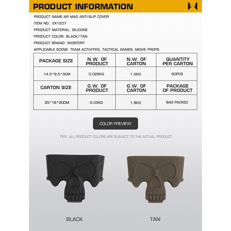 WoSporT シリコン製スカルスタイル マガジン バンパー 3個 セット M4 5.56マガジン対応 Black