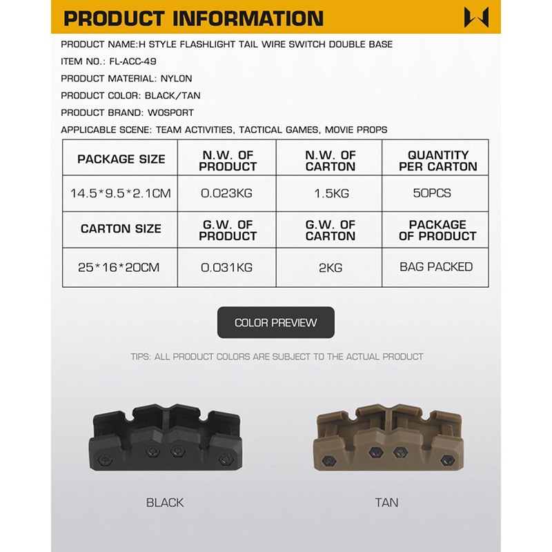 WoSporT Hタイプ スカウトライト ワイヤースイッチ ダブルベース 20mm/ピカティニーレール 対応 Black