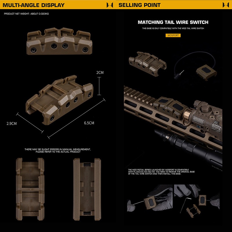 WoSporT Hタイプ スカウトライト ワイヤースイッチ ダブルベース 20mm/ピカティニーレール 対応 Tan