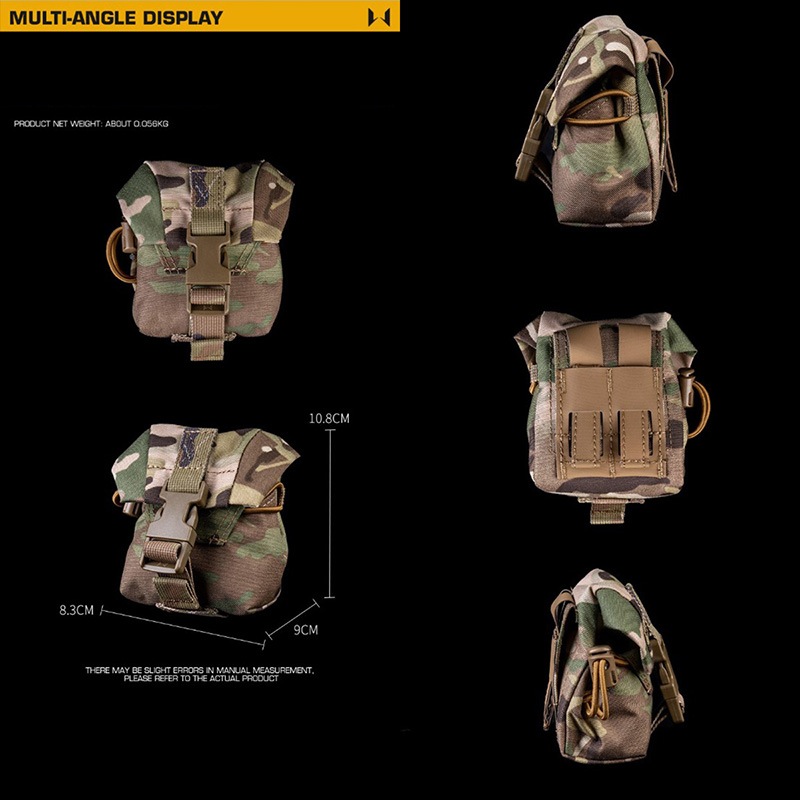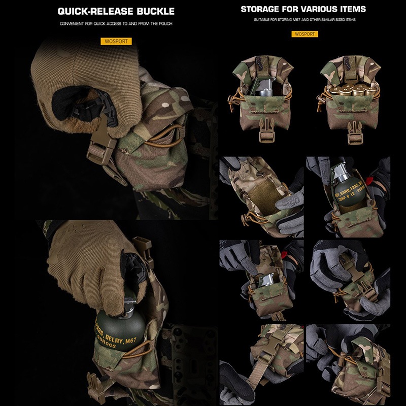 M67タイプのダミーグレネードや同サイズの小型アイテム収納に対応し、サバイバルゲームやタクティカルトレーニング装備の拡張に最適。
