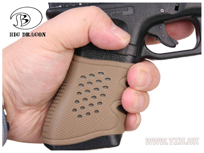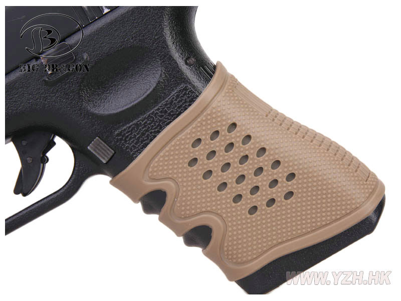 グロックのフルサイズ/コンパクトサイズフレームに対応したグリップ用カバーです。 伸縮性・防滑性に優れたラバー製で強固なグリッピングが可能。G17/G19などに対応しています。