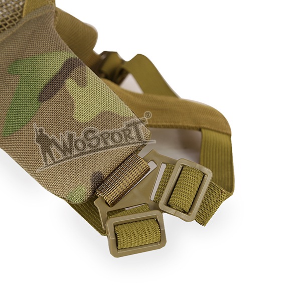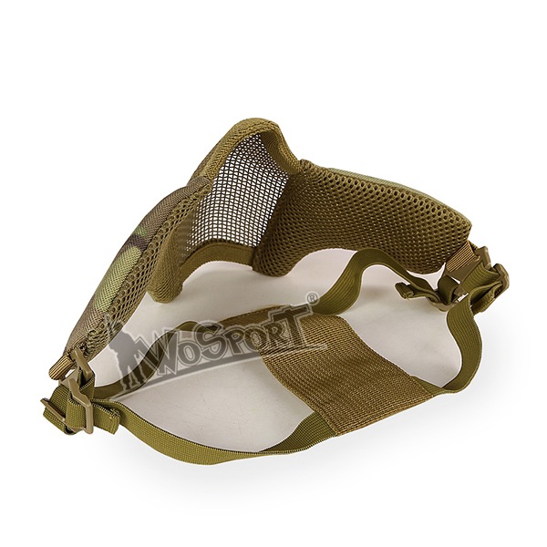 ハーフフェイスマスクに迷彩生地が取り付けられ、より迷彩効果が高まります。