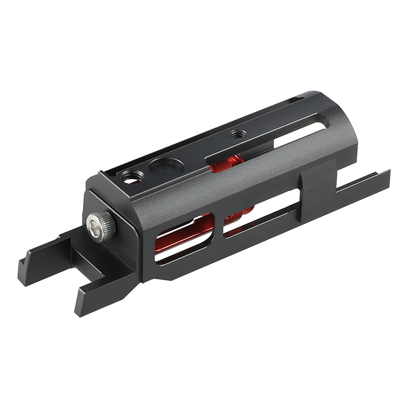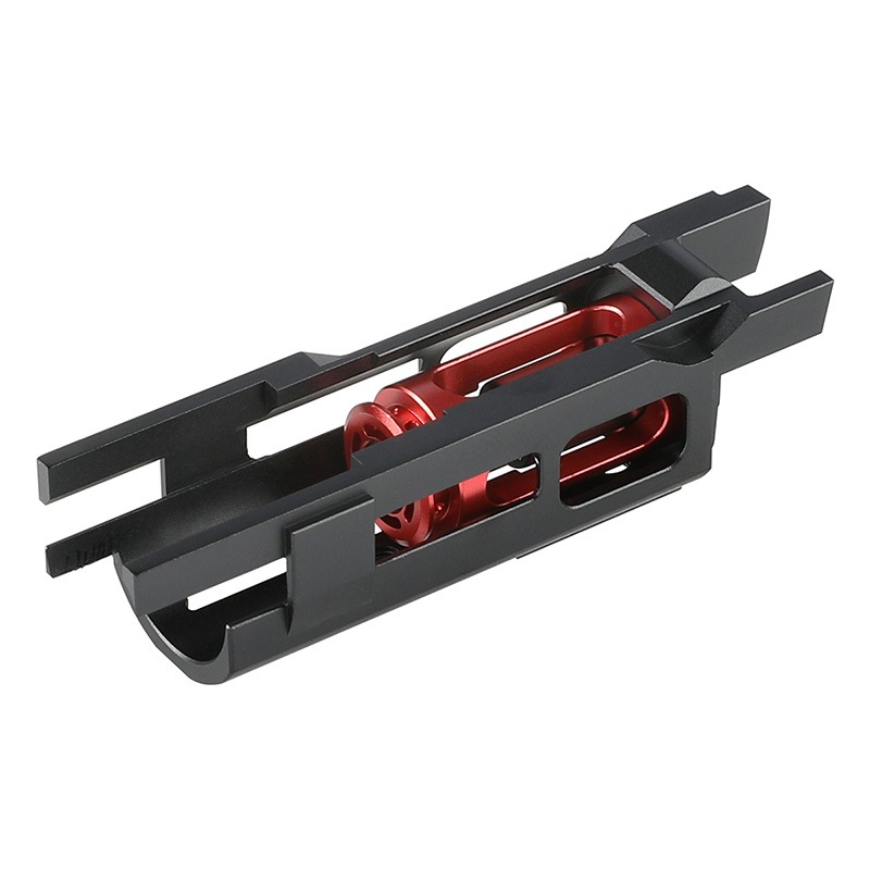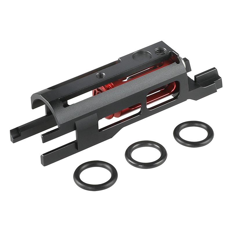 B01ブローバックハウジングは、軽量性・堅牢性に優れた、超々ジュラルミンと呼ばれる7075アルミ合金を素材として採用し、CNC切削加工により製作されています。 そのため重量を僅か18gに抑えることに成功し、ガスの流入に加えブローバックサイクル効率の向上を図ることができます。