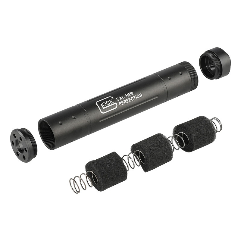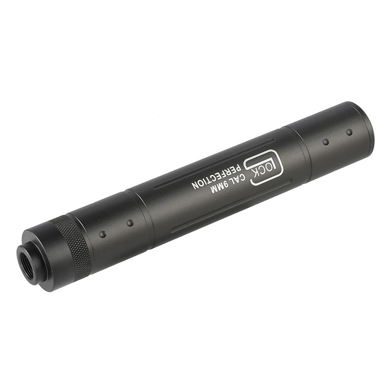 ハンドガンやライフルなど様々な機種への装着に適したマルチキャリバーサイレンサーです。 材質はアルミとなっており、表面にはCross Bone Skullのレーザーマーキングが施されています。