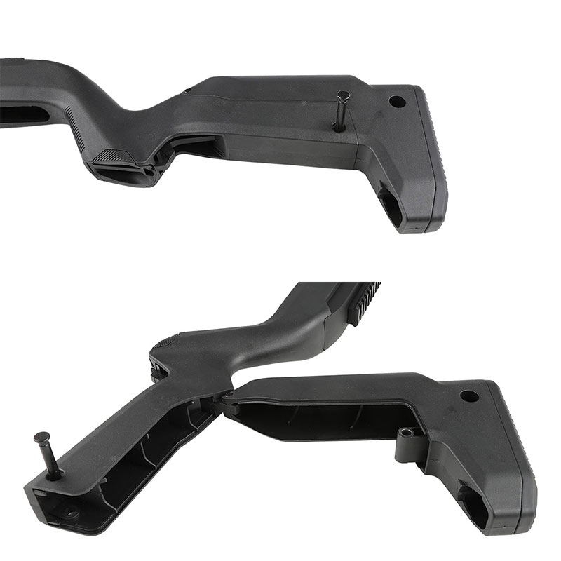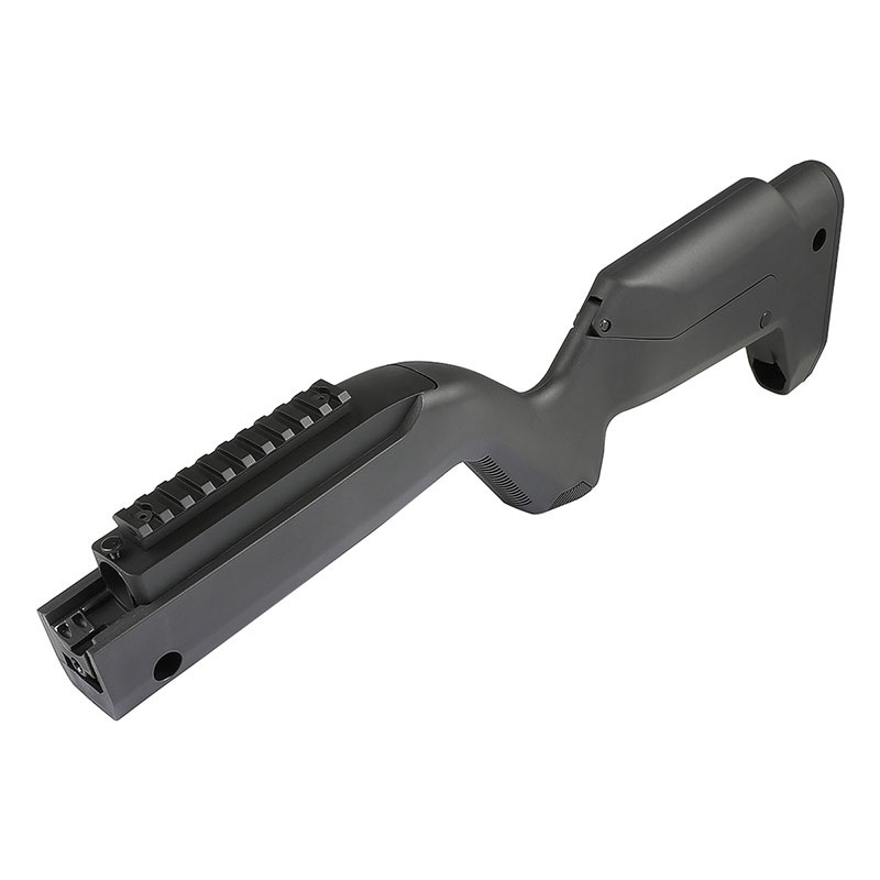 材質には耐久性に優れた強化ポリマーが採用されており、そのエルゴノミクスに優れたハンドガードや前後のQDスリングマウントが特徴。 後部には、ピンを引き抜くとヒンジで展開するストレージがあるため、小型アイテムを収納することが可能となっています。