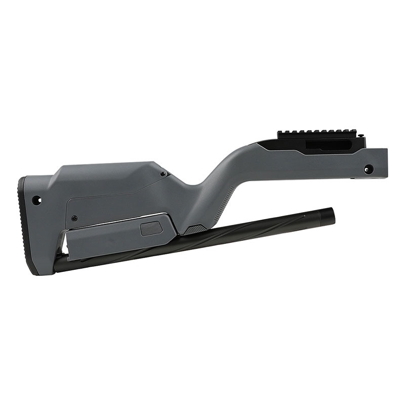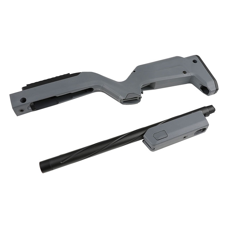 KJ WORKS KC02ホークアイに対応したマグプルX-22タイプバックパッカーキットです。 ライフルを素早く分解・組み立てが可能なストックキットで、使用する場合にはバレルをストックの接続部へねじ込むだけで組み立てができる一方で、 使用しない場合にはバレルをストック下部へ装着することによってキャリングに適したコンパクトサイズにすることができます。