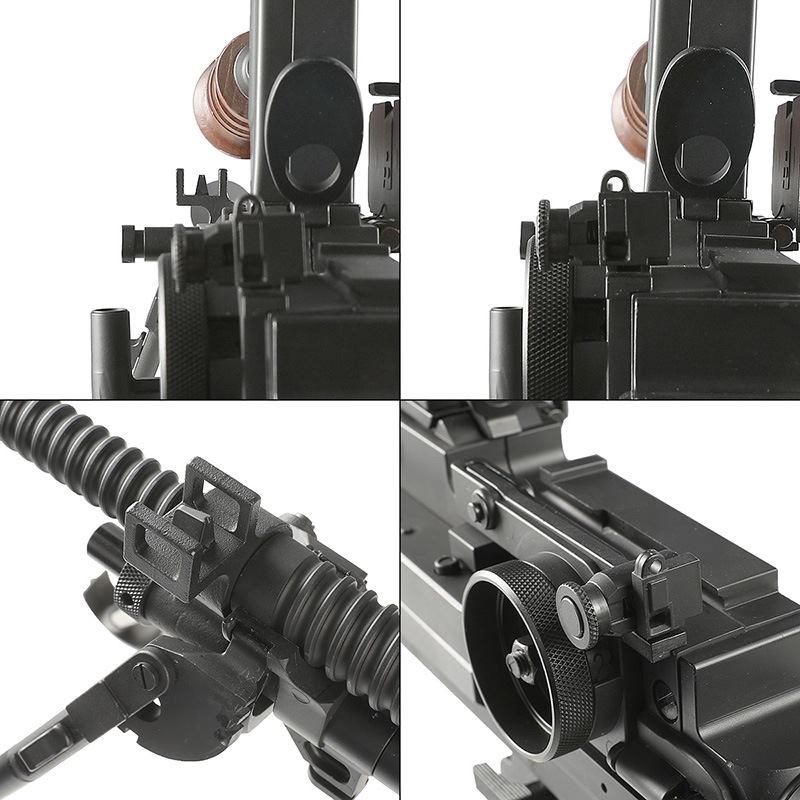 アルミ合金製ながら軽機関銃にふさわしい重厚な質感とサイズ感を損なわないよう表面はマットブラックフィニッシュとなっています。