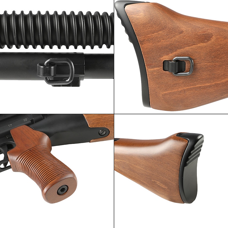 ピストルグリップ、ストック、キャリングハンドルにはリアルウッドを採用。