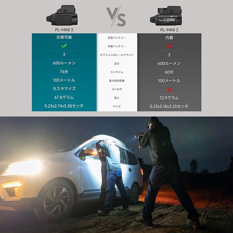 OLIGHT(オーライト) PL-MINI 3 タクティカルライト 充電式 600ルーメン IPX6防水 ピカティニーレール適用 (Black)