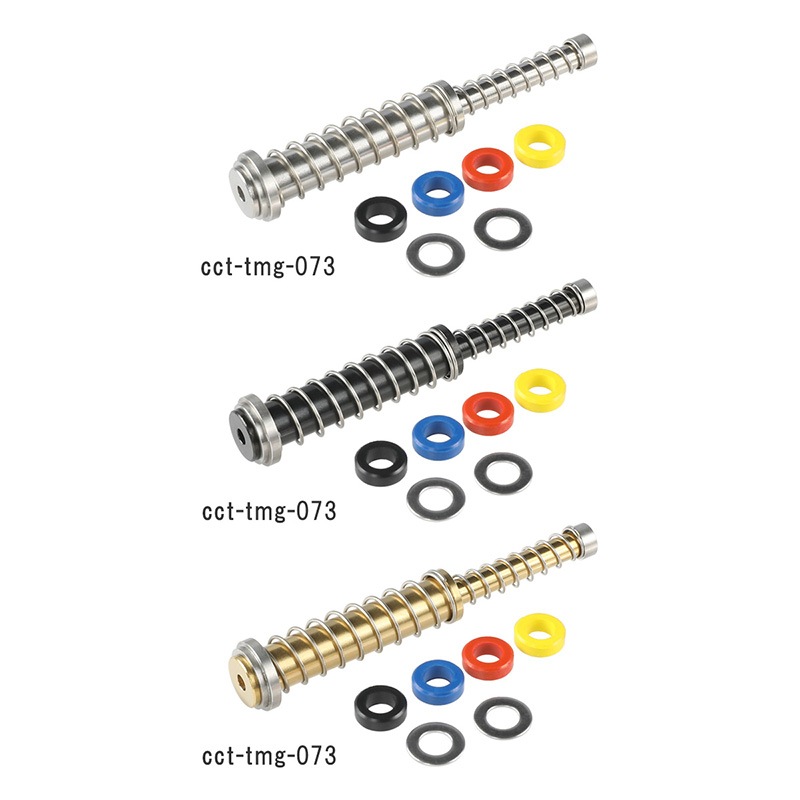 使用材質はステンレススチール素材、CNC加工による高精度仕上げとなっており強化リコイルスプリングが付属、セッティングによりブローバックサイクルを高速化することが可能です。