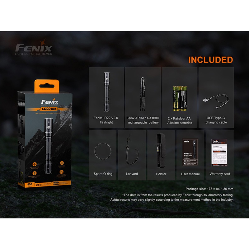 FENIX(フェニックス) LD22 V2.0 マルチパーパス アウトドア フラッシュライト 最大800ルーメン/214m照射 Type-C 充電 ポータブルライト LEDライド 懐中電灯