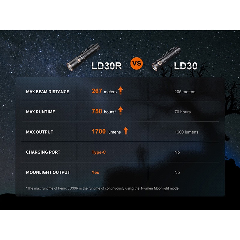FENIX(フェニックス) LD30R 高性能 アウトドア フラッシュライト 最大1700ルーメン/267m照射 Type-C 充電 ポータブルライト LEDライド 懐中電灯