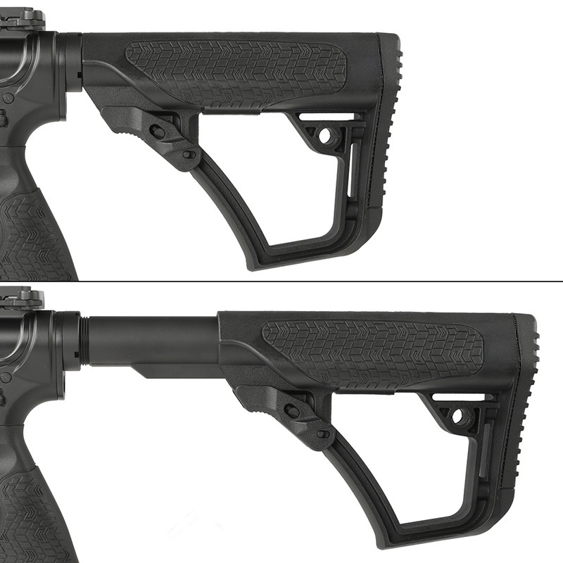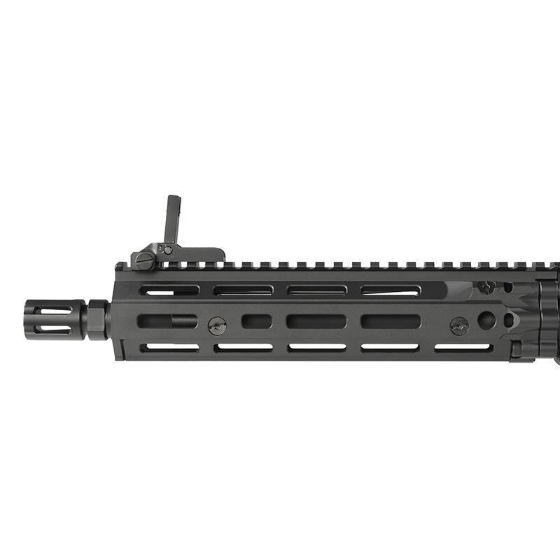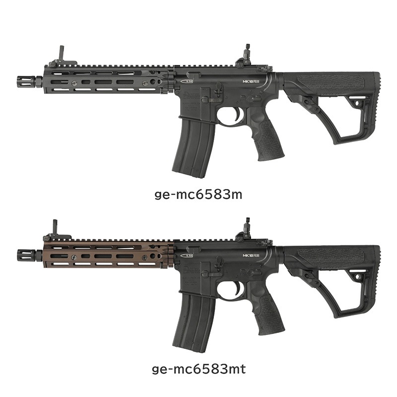 実銃メーカーDaniel Defenseが2022年に発表したDD4 MK18 RIII SBRは、従来のMK18プラットフォームをさらに進化させた最新モデル。米特殊部隊向けに採用実績のあるRIS IIを改良した新設計の「RIS III」ハンドガードを搭載し、軽量化とM-LOKによる拡張性の両立を実現しています。全体の操作系は両利き対応のアンビ設計となっており、左右の切り替えやCQB環境での即応性にも優れます。10.3インチのショートバレルは、狭所での高い機動性と取り回しやすさを追求した構成。実用性と信頼性の高さから、プロフェッショナルユーザーを中心に高い評価を集めています。