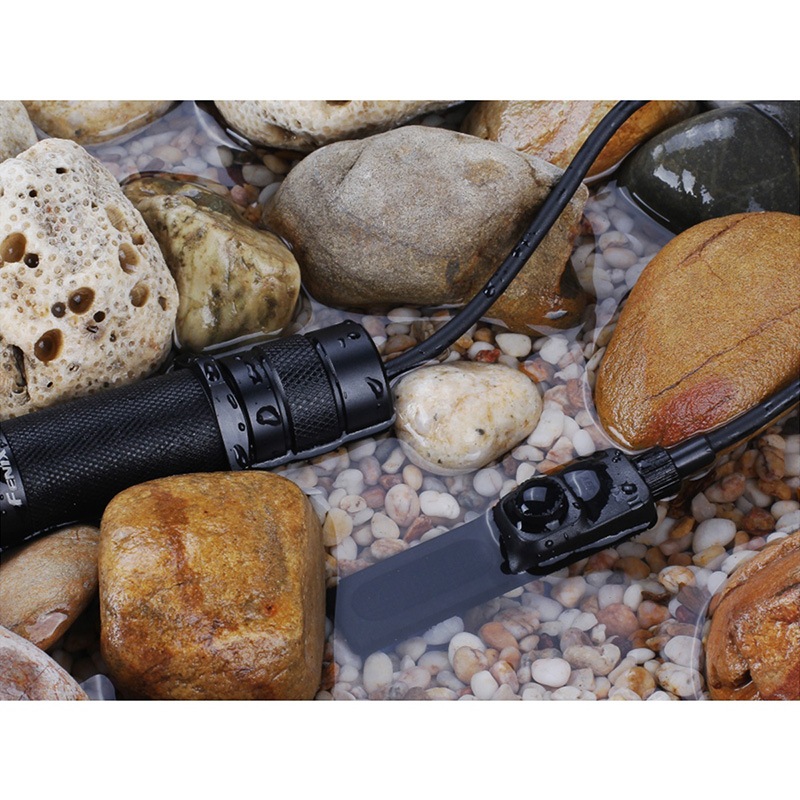 Fenix AER-02 V2.0は、タクティカルライトに対応したリモートプレッシャースイッチです。静音タイプのスイッチと常時点灯対応のテールスイッチを備え、即時の点灯・消灯操作が可能。耐久性に優れたアルミニウム製テールアダプターと耐久性の高いPUケーブルを採用し、過酷な環境でも安定したパフォーマンスを発揮します。IP68の防塵・防水性能、ベルクロやケーブルタイによる柔軟な固定方式も特徴です。