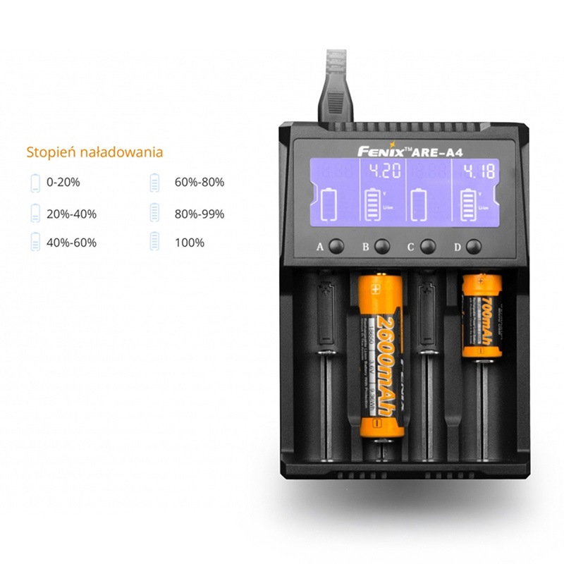 FENIX(フェニックス) ARE-A4 リチウム充電器 高機能電池充電器 ニッケル水素電池/ニカド電池対応 車載充電可能 セーフティ機能 バッテリー残量表示 PSE適合