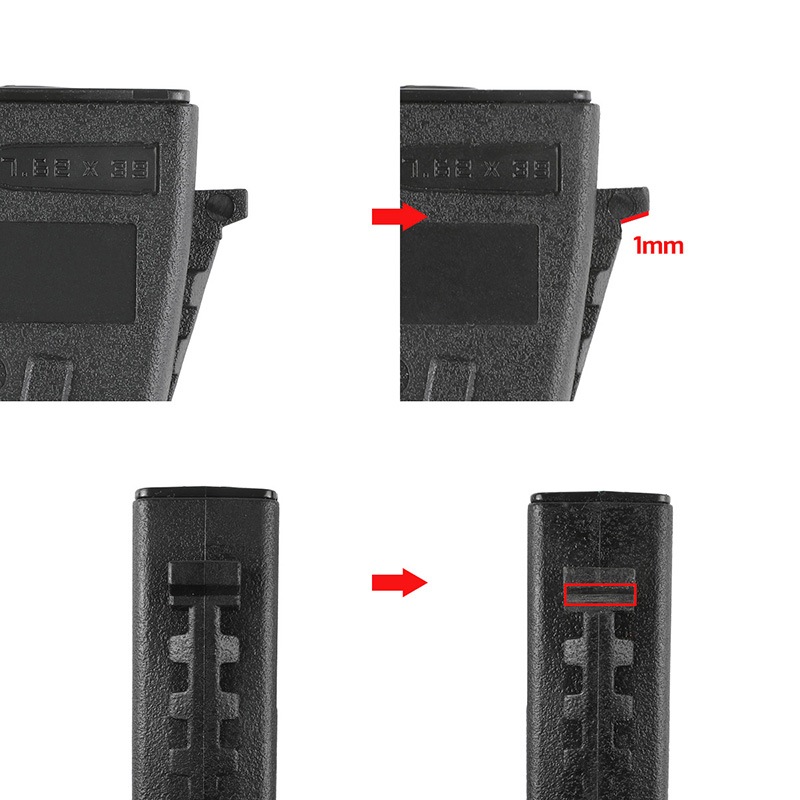 MOEマガジンはロープロファイルリブや前後に設けられたアグレッシブデザインのニュータイプテクスチャーが採用され強度、耐久性、操作性などが改良されたモデル。 下部に設けられた識別用ペンドットマトリックス、ロープロファイル化されたフロアープレートなども特徴で、 リブやマーキングなどリアルな仕上がりとなっているためドレスアップにも適しています。