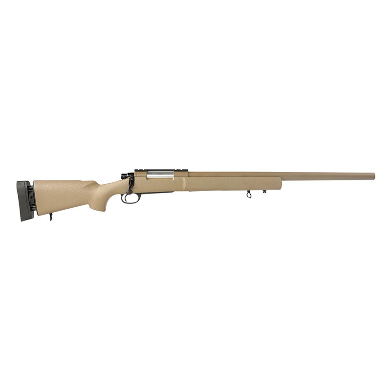 レミントン M24は、米陸軍が1988年に制式採用したボルトアクション式スナイパーライフルで、Remington Model 700ロングアクションをベースに開発されました。口径は7.62×51mm NATOを基本とし、後に.300 Win Mag仕様(M24A3)も登場。24インチのステンレス製バレルに5Rライフリングを採用し、高精度と耐久性を両立しています。ストックはHSプレシジョン製合成素材で、スコープはLeupold製を標準装備。有効射程は約800mで、アフガン・イラク戦争でも広く使用されました。改修型のM24E1(XM2010)へと更新されつつも、M24は今なお一部の軍・法執行機関で現役を維持する信頼性の高いスナイパーシステムです。