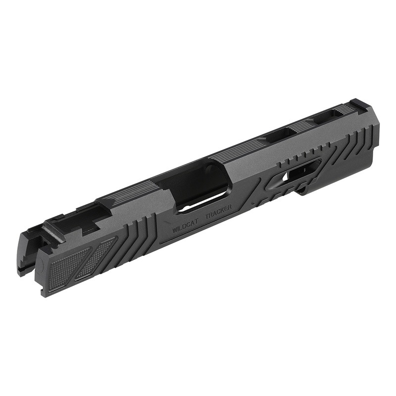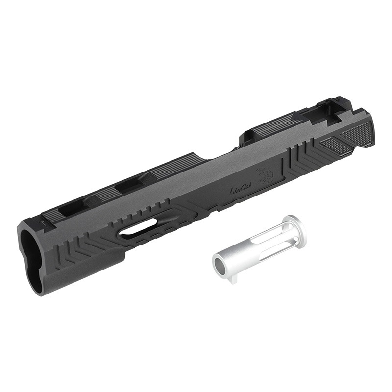 東京マルイ Hi-Capa GBBシリーズ5.1対応に装着可能な、LimCat Custom “WildCat” スタイルを再現したCNCアルミスライドです。大胆なスライドカットにより軽量化と作動性の向上を両立。サイドにはノーリング加工を施し、グローブ装着時でも高い操作性を実現。アノダイズ処理によるブラック仕上げで、性能と美しさを兼ね備えたカスタムパーツです。競技やタクティカル志向のユーザーに最適です。