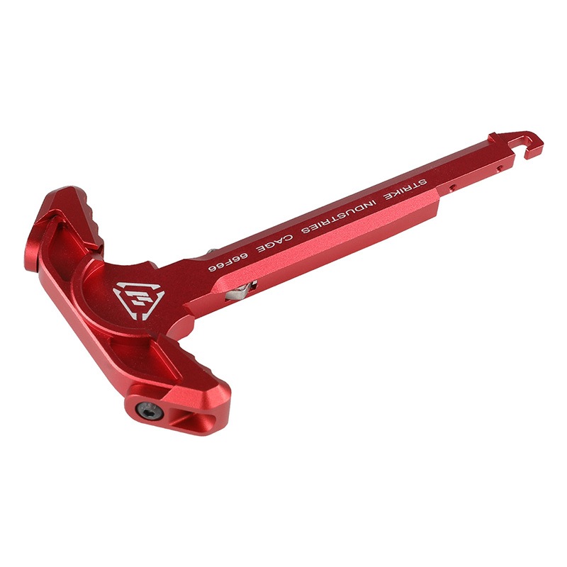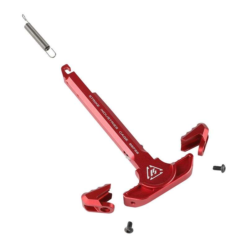 STRIKE INDUSTRIES社の「Strike Latchless Charging Handle」は、従来のチャージングハンドルにラッチ機構を省いたデザインで、操作性と軽量化を両立させた実銃用パーツです。