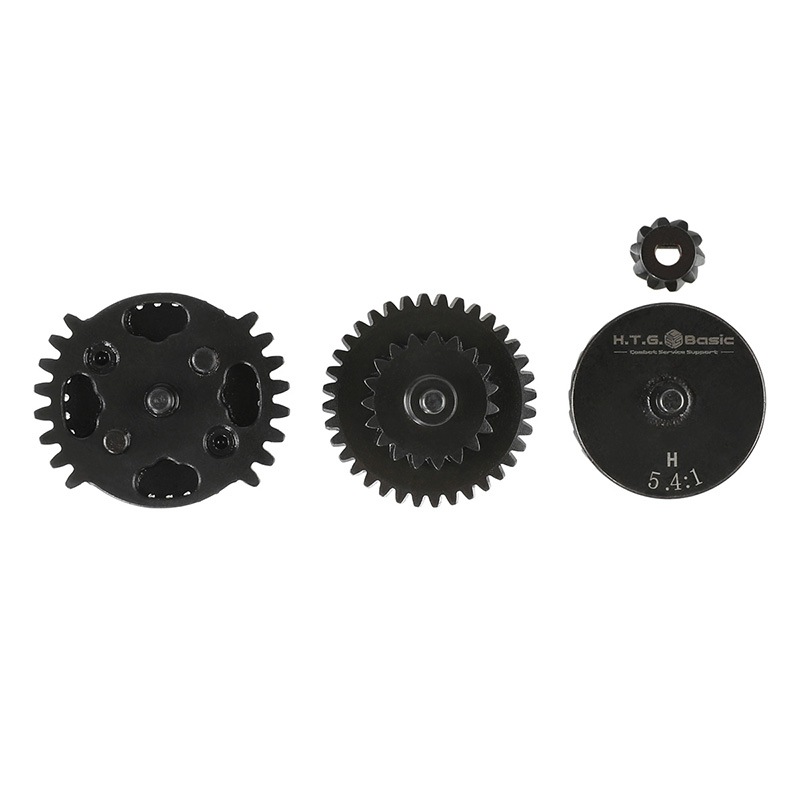 HTGベーシック スパイラル ヘリカルスチール ギアセット 5.4:1 "玄ギア" 電動ガン用 CNC削り出し デュアルセクターギア DSGギア