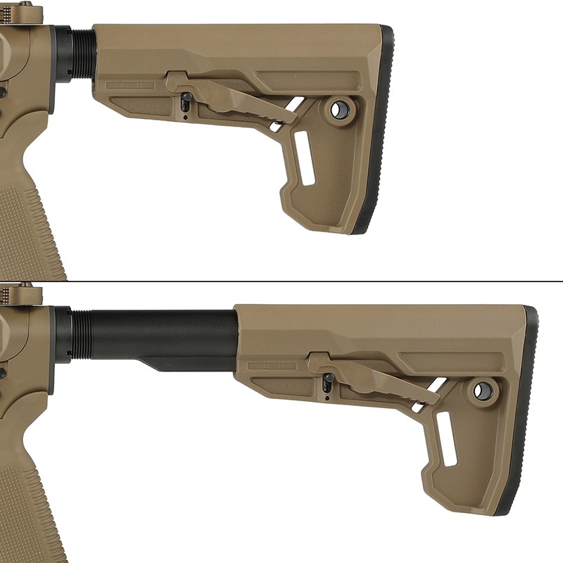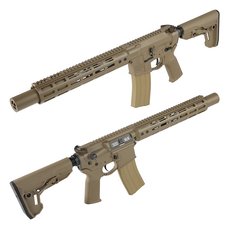 このモデルは、5.56mm NATO弾と.300 AAC Blackout弾の両方に対応し、状況に応じた弾薬の選択が可能。Gen.3アッパーレシーバーとNSR-SD(サプレッサー仕様)11インチM-LOKハンドガードを採用し、軽量化と拡張性を向上させています。また、操作性を考慮し、フルアンビ仕様のチャージングハンドルや高品質なパーツを装備。
