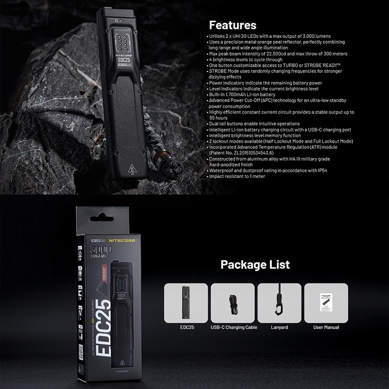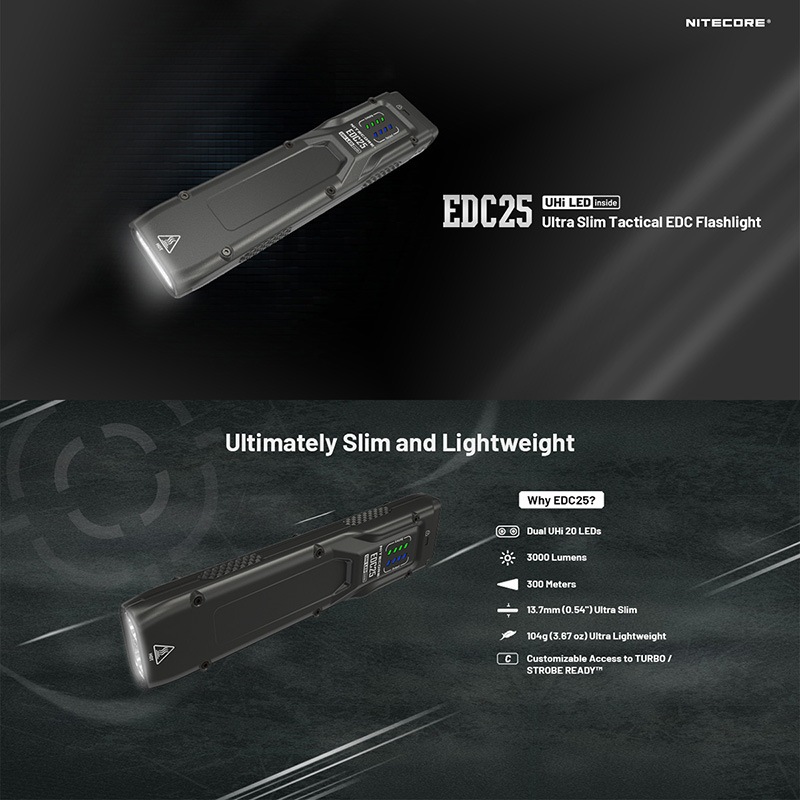 NITECORE(ナイトコア) EDC25 超薄型 フラッシュライト 最大3000ルーメン/300m照射 Type-C 充電 ポータブルライト LEDライド 懐中電灯 EDCライト