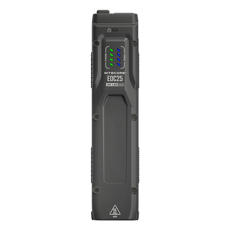 NITECORE製EDC25は、EDC(Everyday Carry)を前提に設計された超薄型・高出力フラッシュライトです。最大3000ルーメン、最大照射距離300メートルの圧倒的な明るさを、厚さわずか13.7mmのスリムボディに凝縮。デュアルUHi 20 LEDと高精度リフレクターの組み合わせにより、近距離から中長距離までバランスの取れた照射を実現します。デュアルテールスイッチによる直感的な操作性、USB Type-C充電対応の内蔵1700mAhリチウムイオンバッテリー、誤点灯を防ぐロックアウト機能など、日常携行からタクティカル用途まで幅広く対応する一台です。