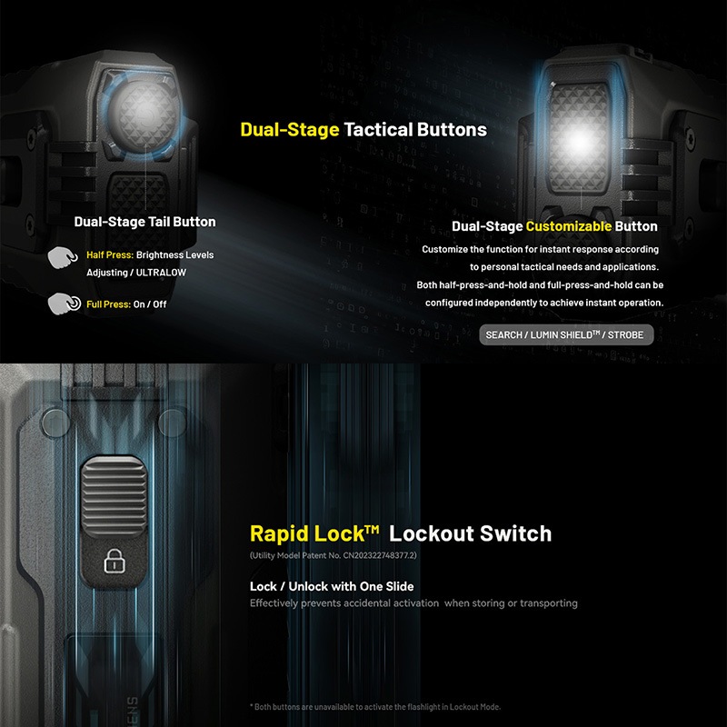 ・4段階の明るさ+LUMIN SHIELD™/SEARCH/STROBE対応