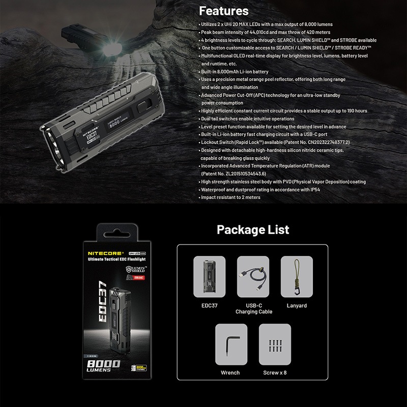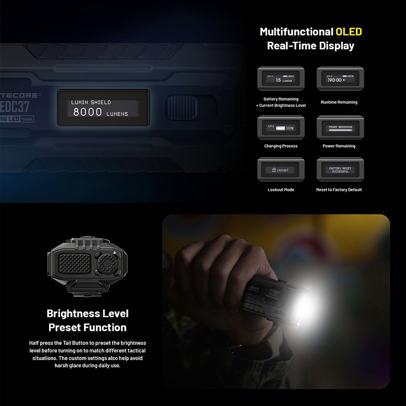 NITECORE(ナイトコア) EDC37 タクティカル フラッシュライト 最大8000ルーメン/420m照射 Type-C 充電 OLEDディスプレイ搭載 ポータブルライト LEDライド 懐中電灯 EDCライト