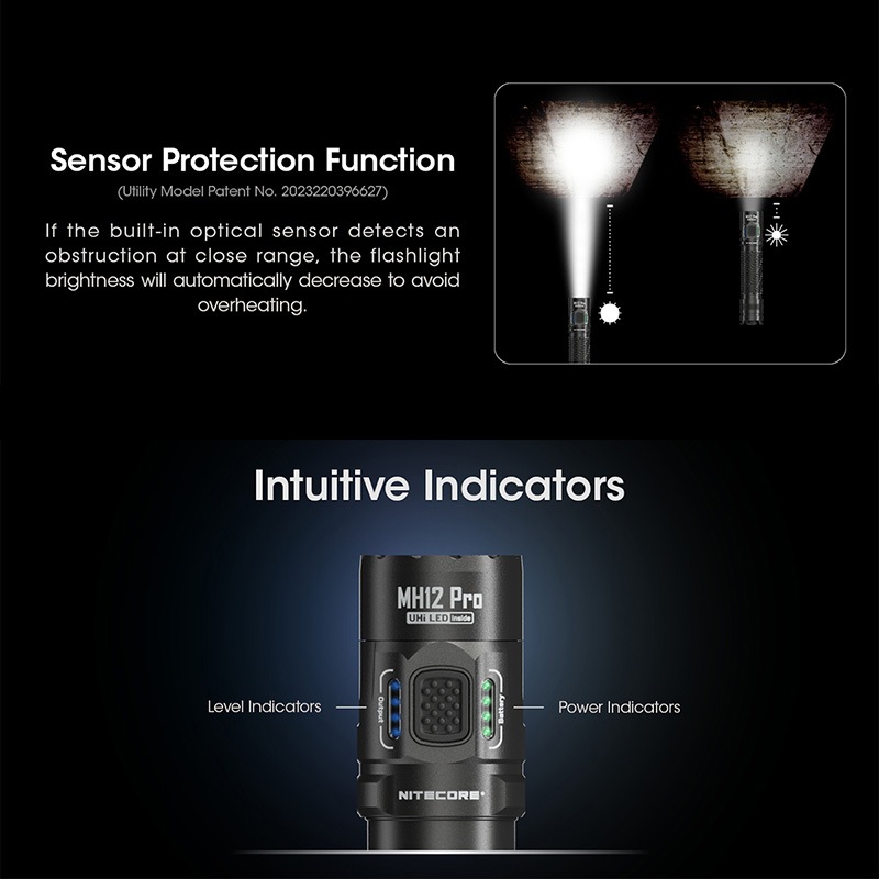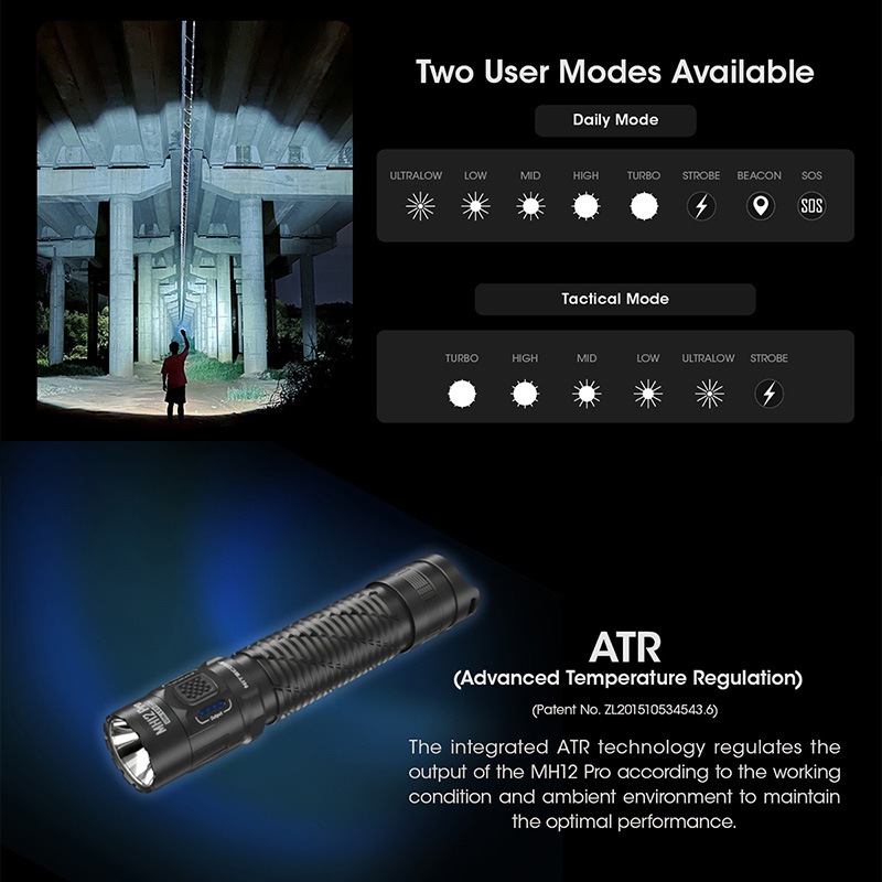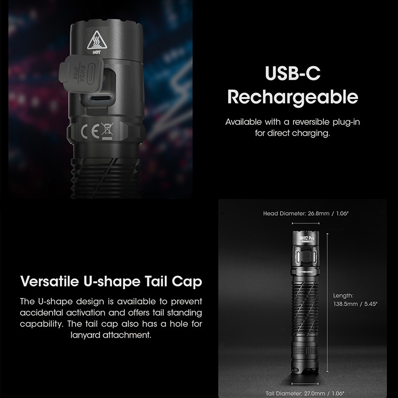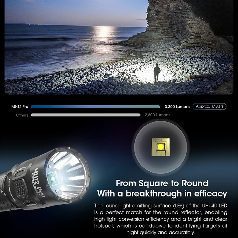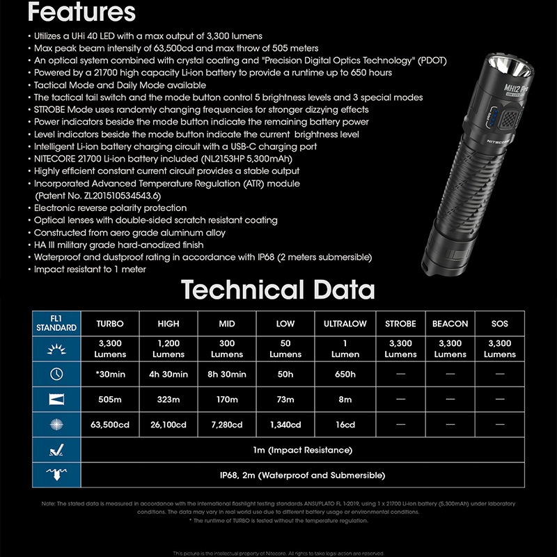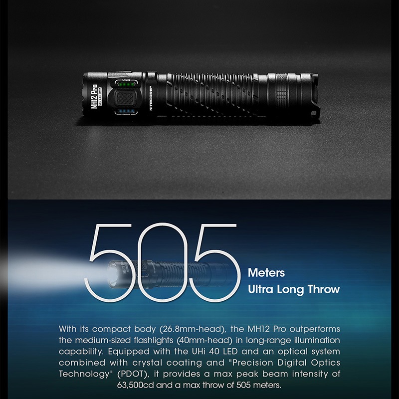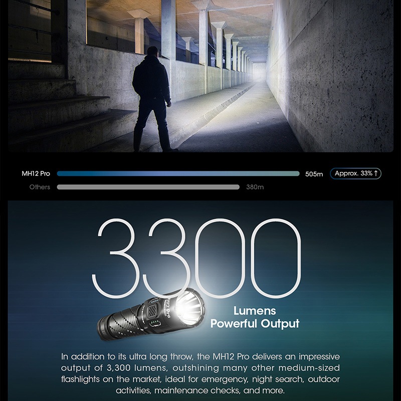 NITECORE(ナイトコア) MH12 Pro フラッシュライト 最大3300ルーメン/505m照射 Type-C 充電 ポータブルライト LEDライド 懐中電灯 EDCライト タクティカルライト
