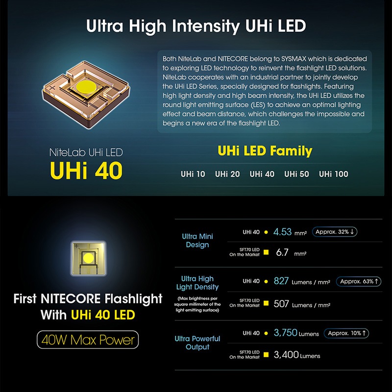 ・UHi 40 LED搭載、最大3300ルーメンの高出力