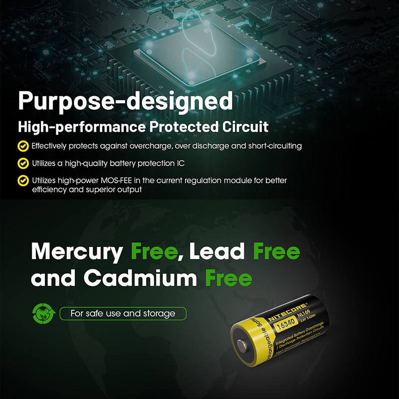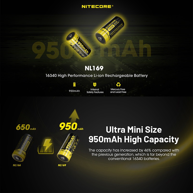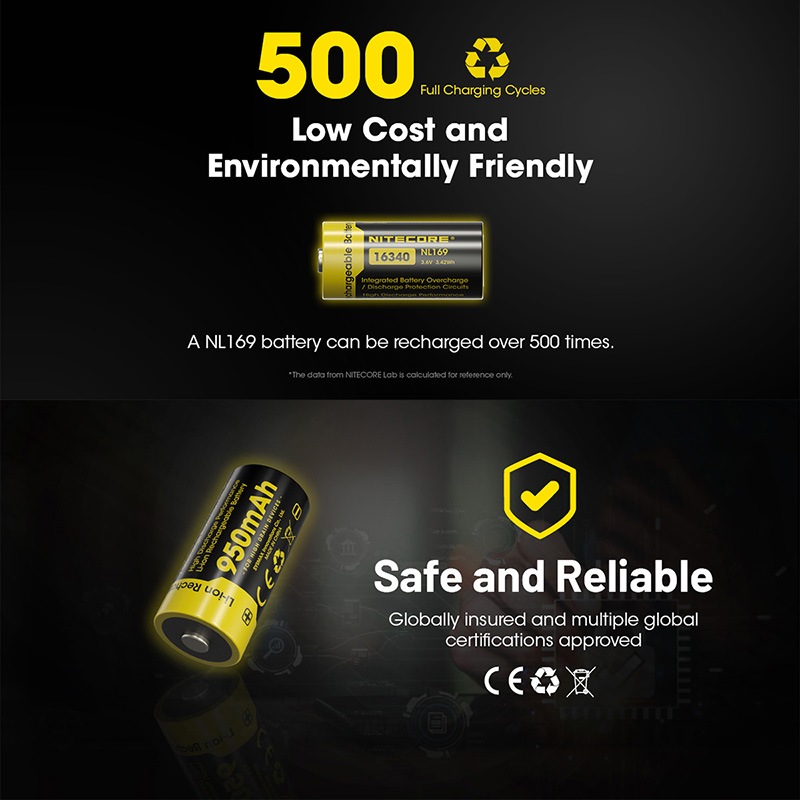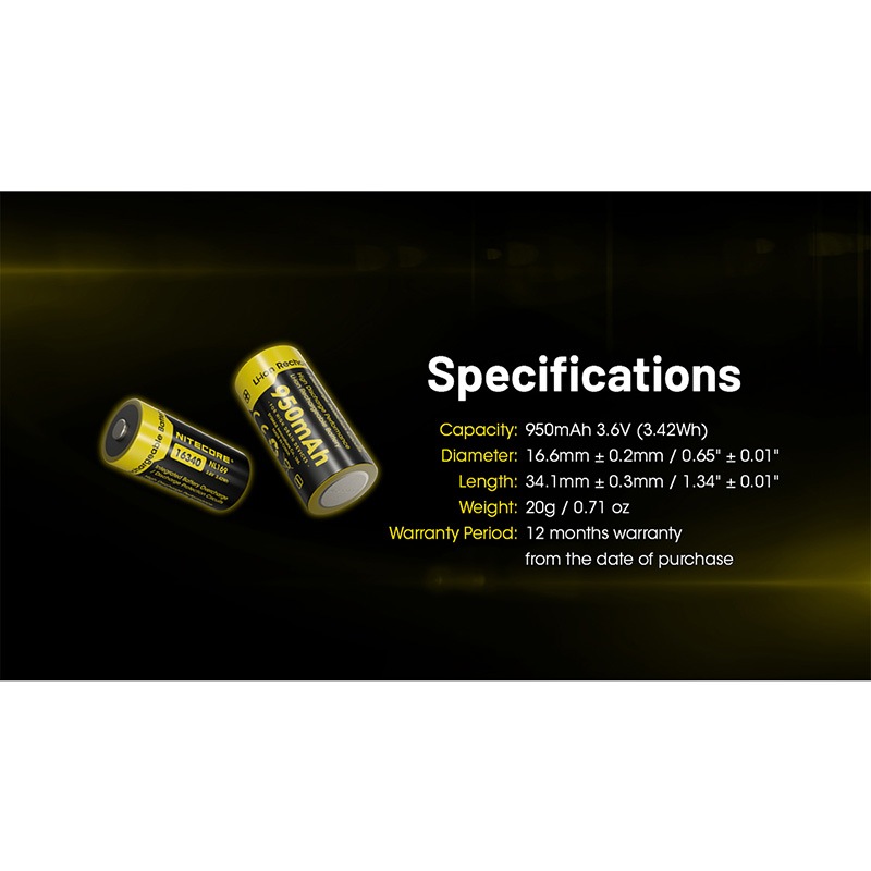NITECORE(ナイトコア) NL169 950mAh 3.6V (3.42Wh) 16340 充電式 リチウムイオン電池 CR123Aサイズ 1本