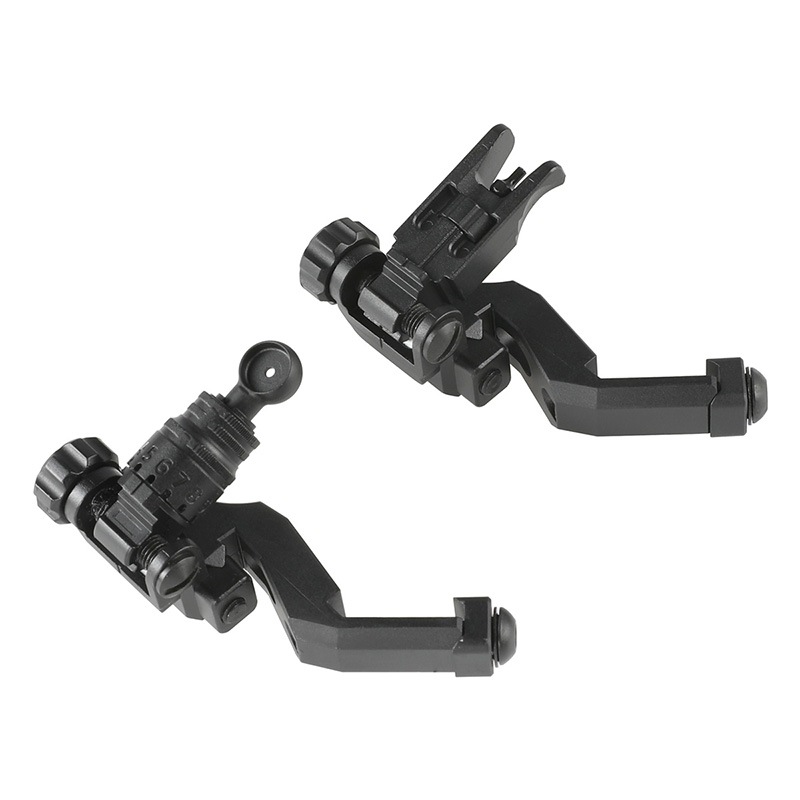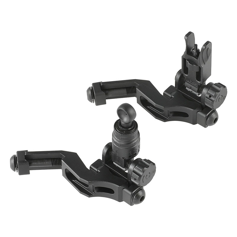 光学照準器のバックアップとして即応性を重視した45度オフセット配置と、未使用時には収納可能なフォールディング機構を備え、実戦運用を想定した構成が特徴です。